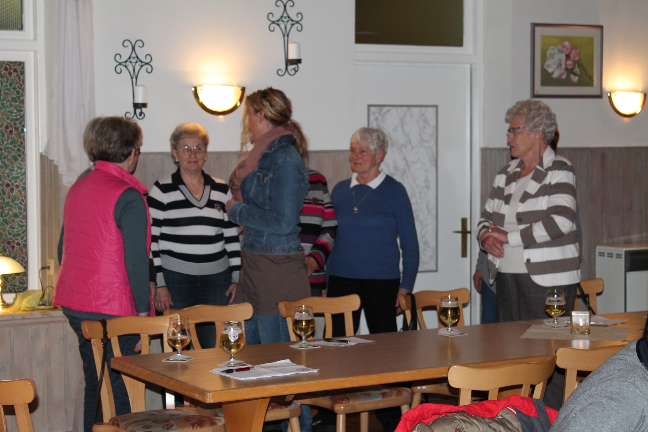Die ca. 20 Damen sind seit vielen Jahren eine eingeschworene Gemeinschaft. Der gute Zusammenhalt lässt sie kaum eine Übungsstunde versäumen. Bei Ausfall der Übungsleiterin finden sie immer Ersatz in den eigenen Reihen(meistens Anke Christiansen). Marion ehrt die Gruppe und überreicht einen Gutschein der Achtruper Stuben.